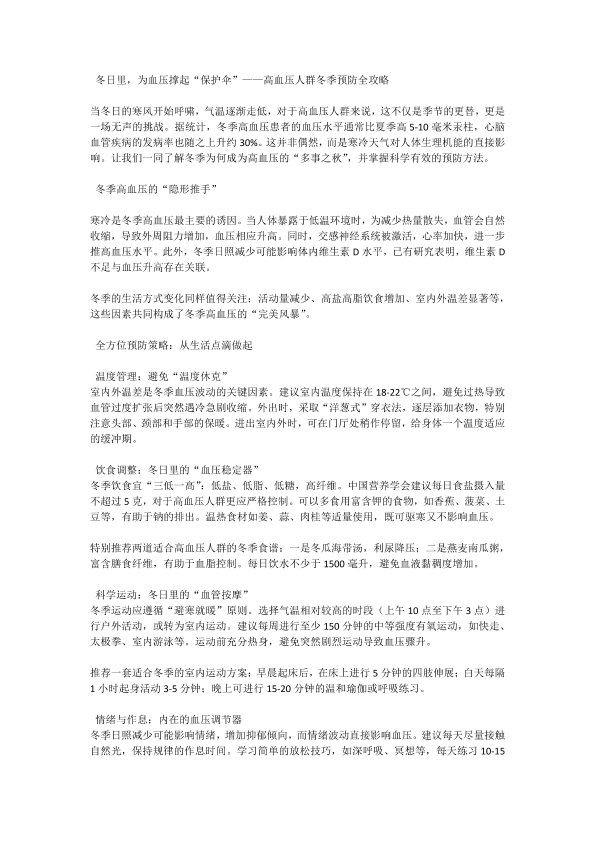 冬日里为血压撑起保护伞