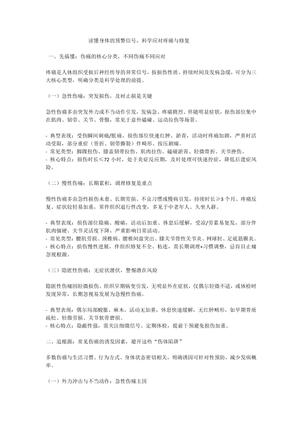 读懂身体的预警信号,科学应对疼痛与修复