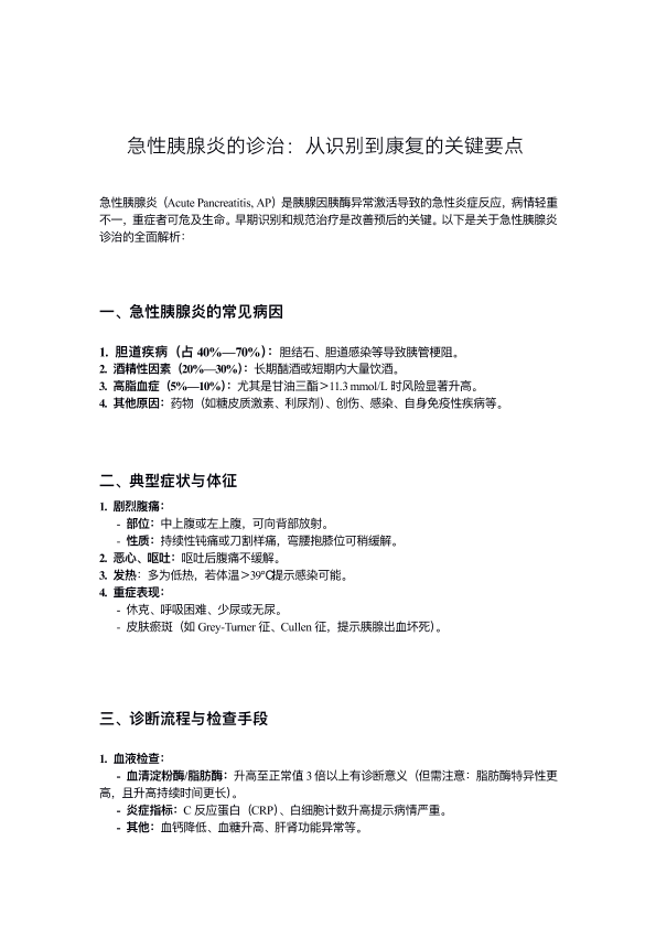 急性胰腺炎的诊治:从识别到康复的关键要点