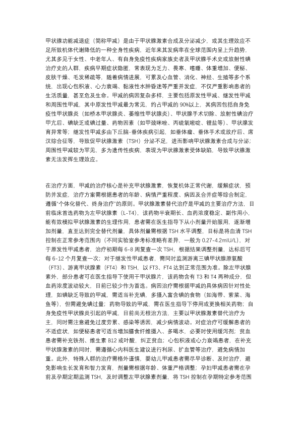甲状腺功能减退的诊治