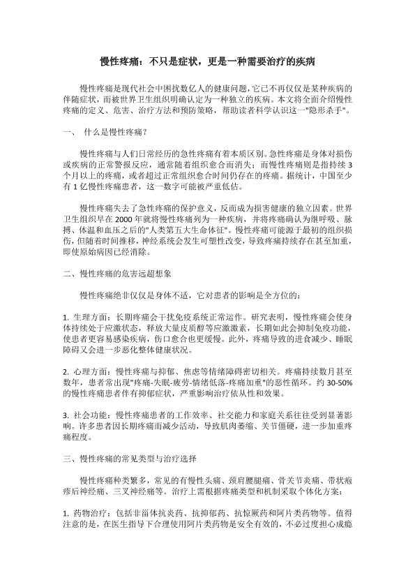慢性疼痛:不只是症状,更是一种需要治疗的疾病