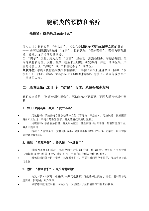 腱鞘炎的预防和治疗