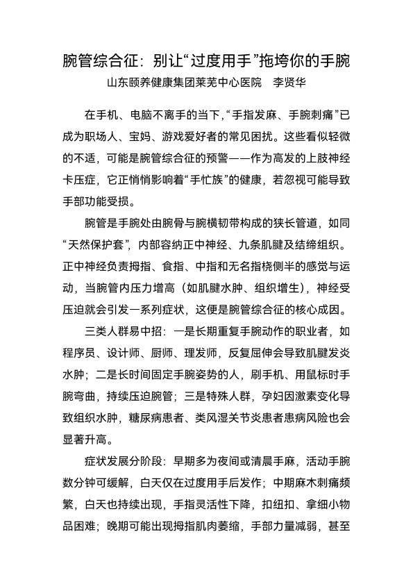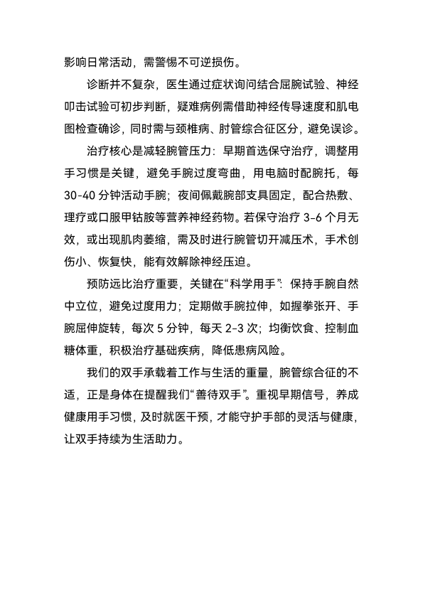 腕管综合征:别让“过度用手”拖垮你的手腕