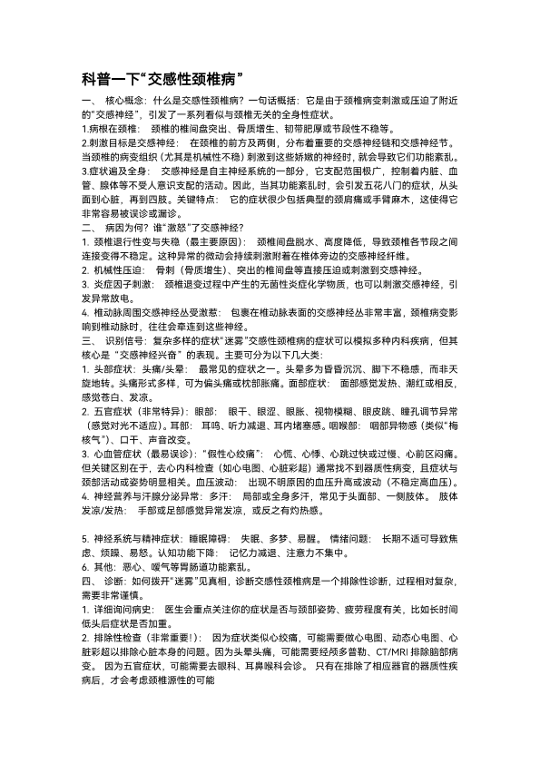 交感性颈椎病的科普