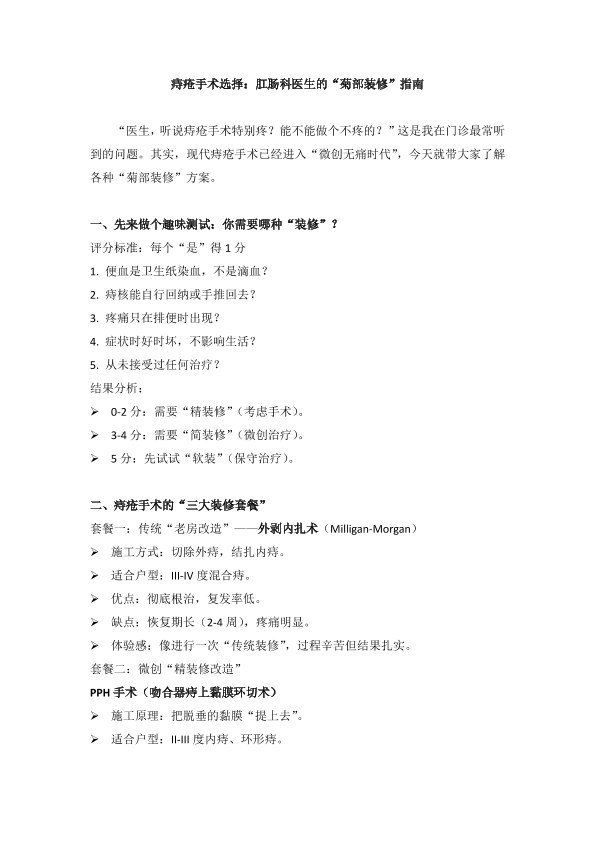 痔疮手术选择:肛肠科医生的“菊部装修”指南