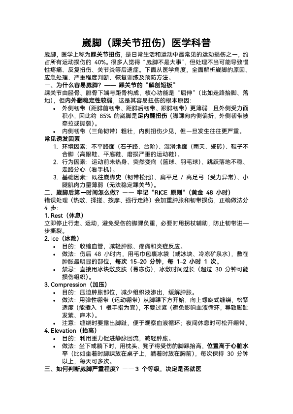 踝关节扭伤应急治疗全指南:从判断到处理的黄金法则