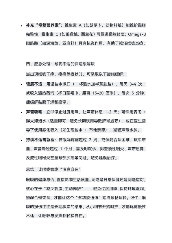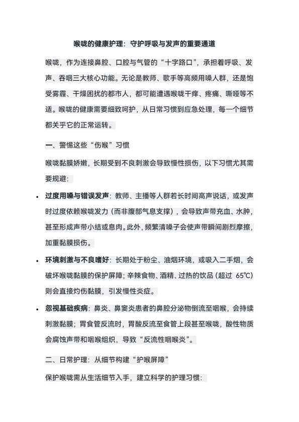 喉咙的健康护理