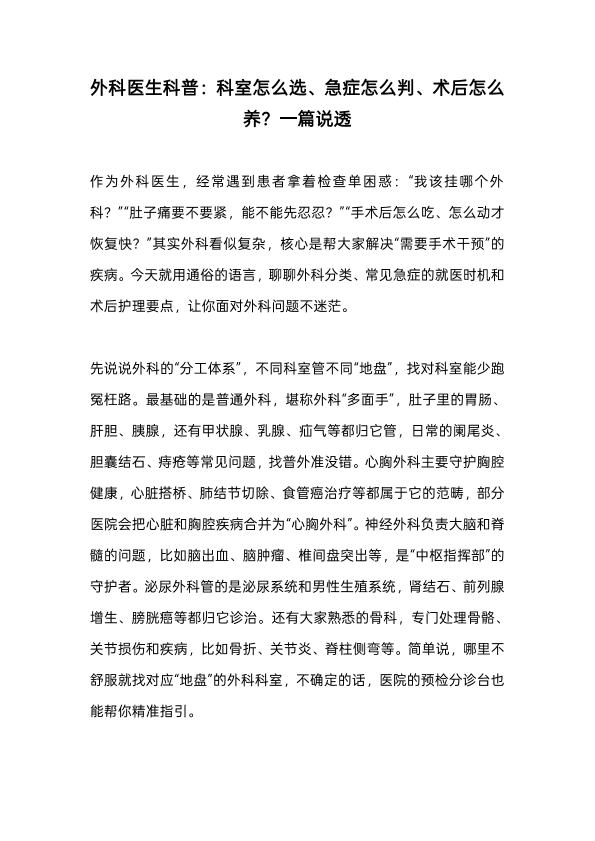 常见病就诊科室的选择
