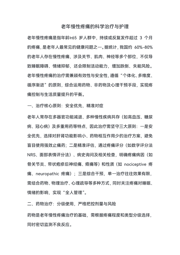 老年慢性疼痛的科学治疗