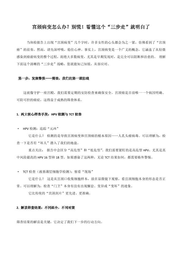 宫颈病变怎么办?别慌!看懂这个“三部走”就明白了