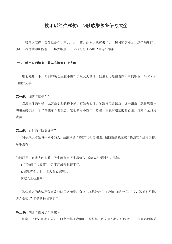 拔牙后的生死劫:心脏感染预警信号大全