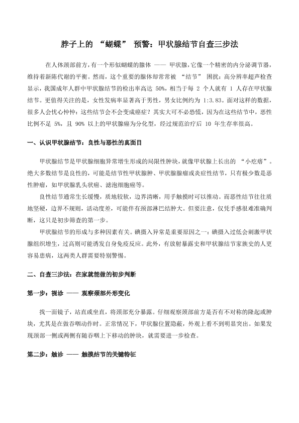脖子上的“蝴蝶”预警:甲状腺结节自查三步法
