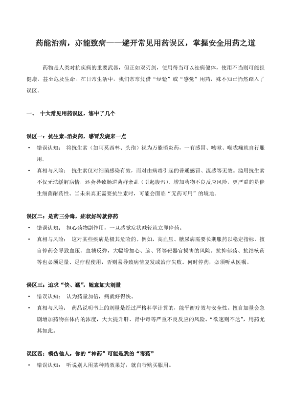 药能治病,亦能致病—避开常见用药误区,掌握安全用药之道