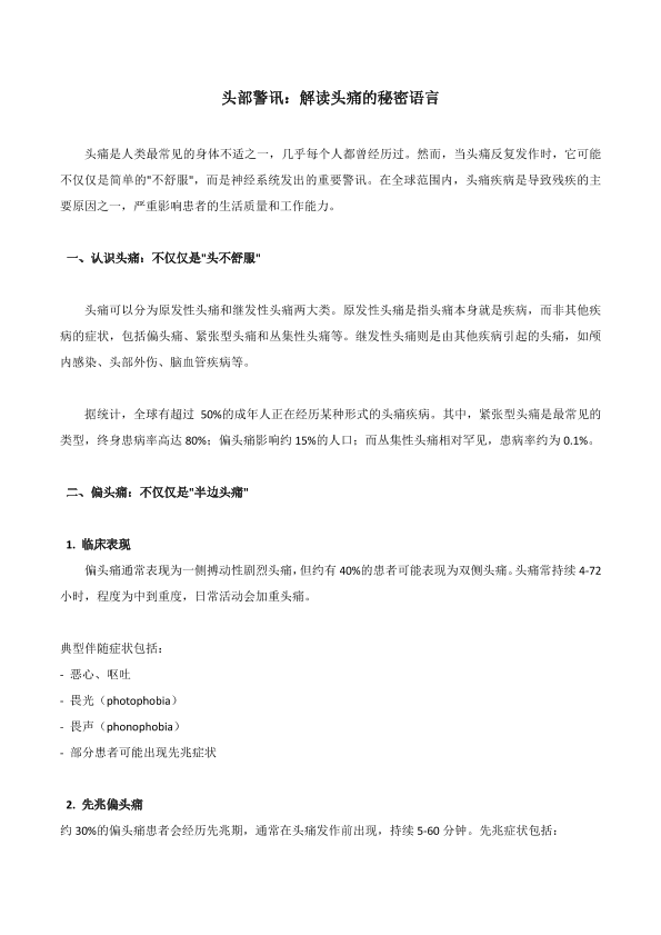 头部警讯:解读头疼的秘密语言