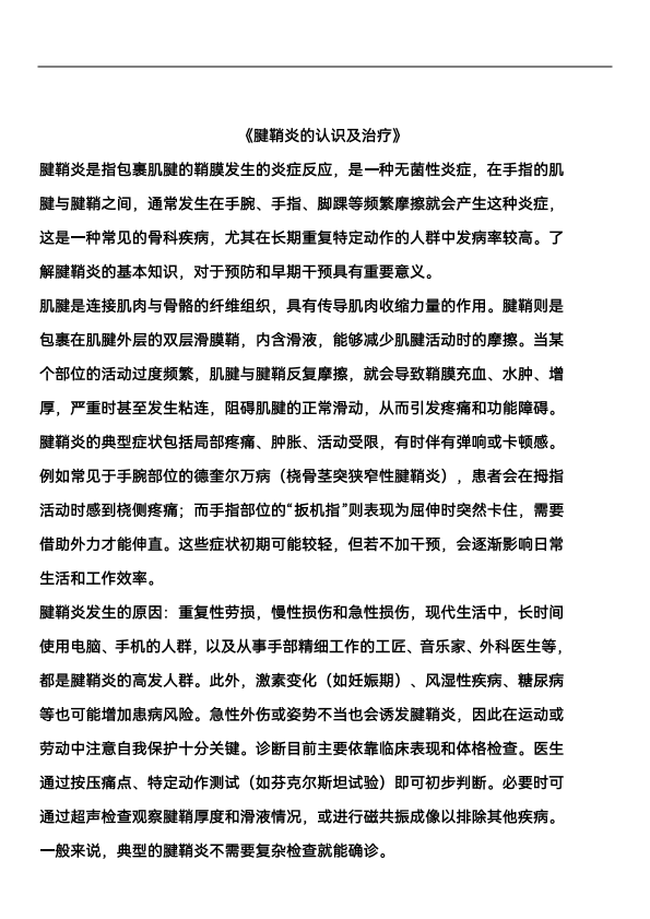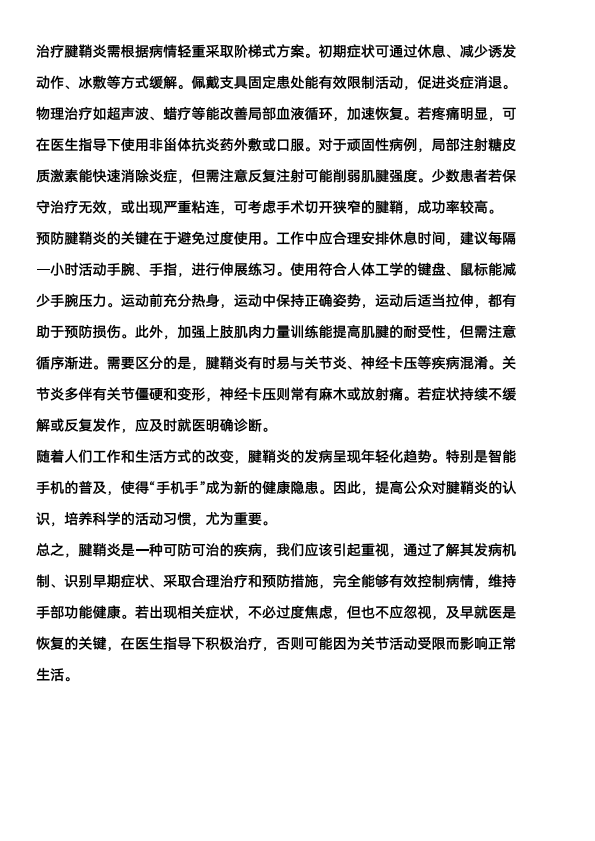 腱鞘炎的治疗及认识