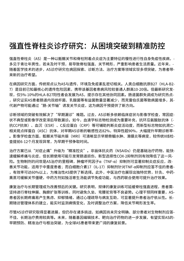 强直性脊柱炎诊疗研究:从困境突破到精准防控