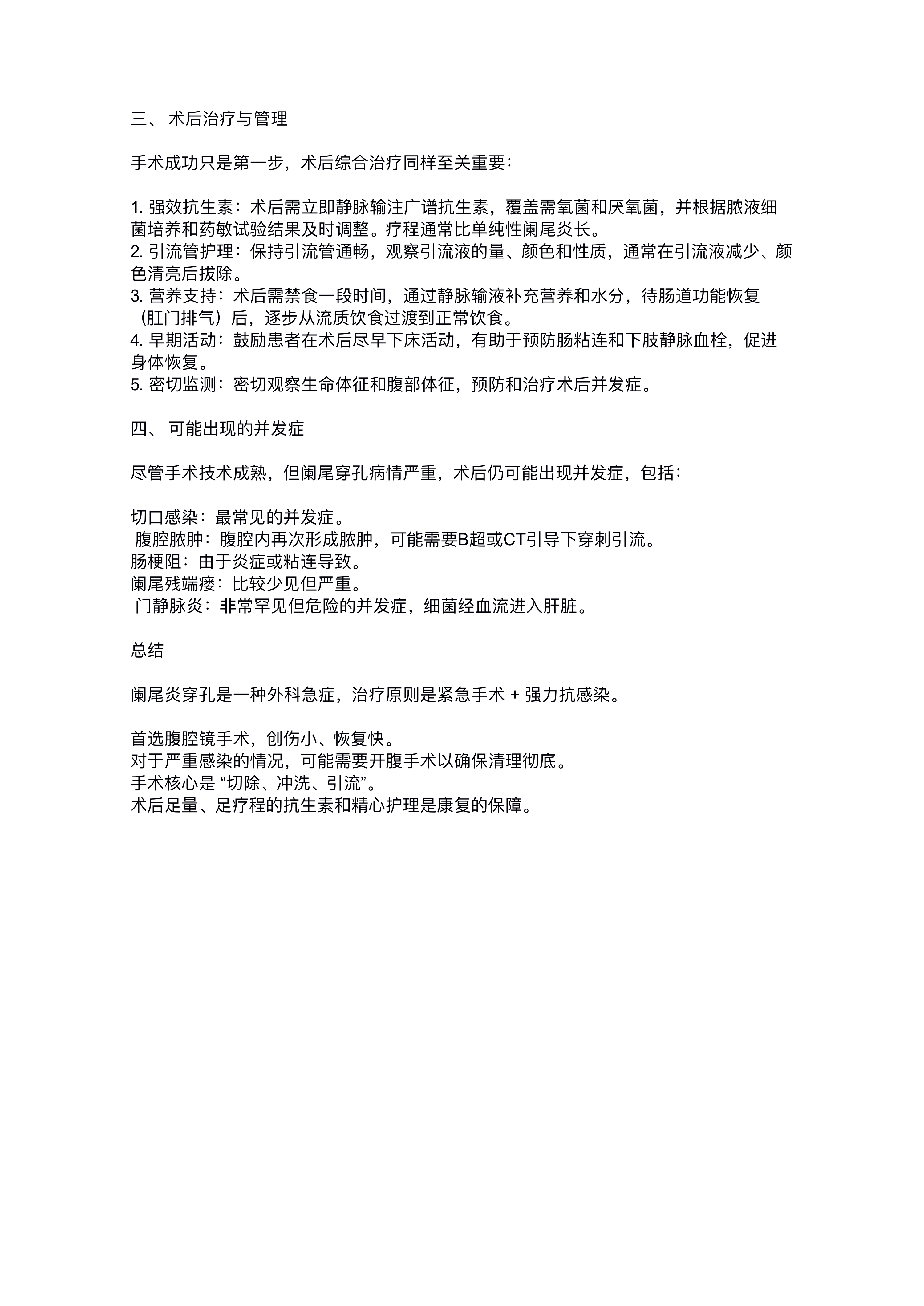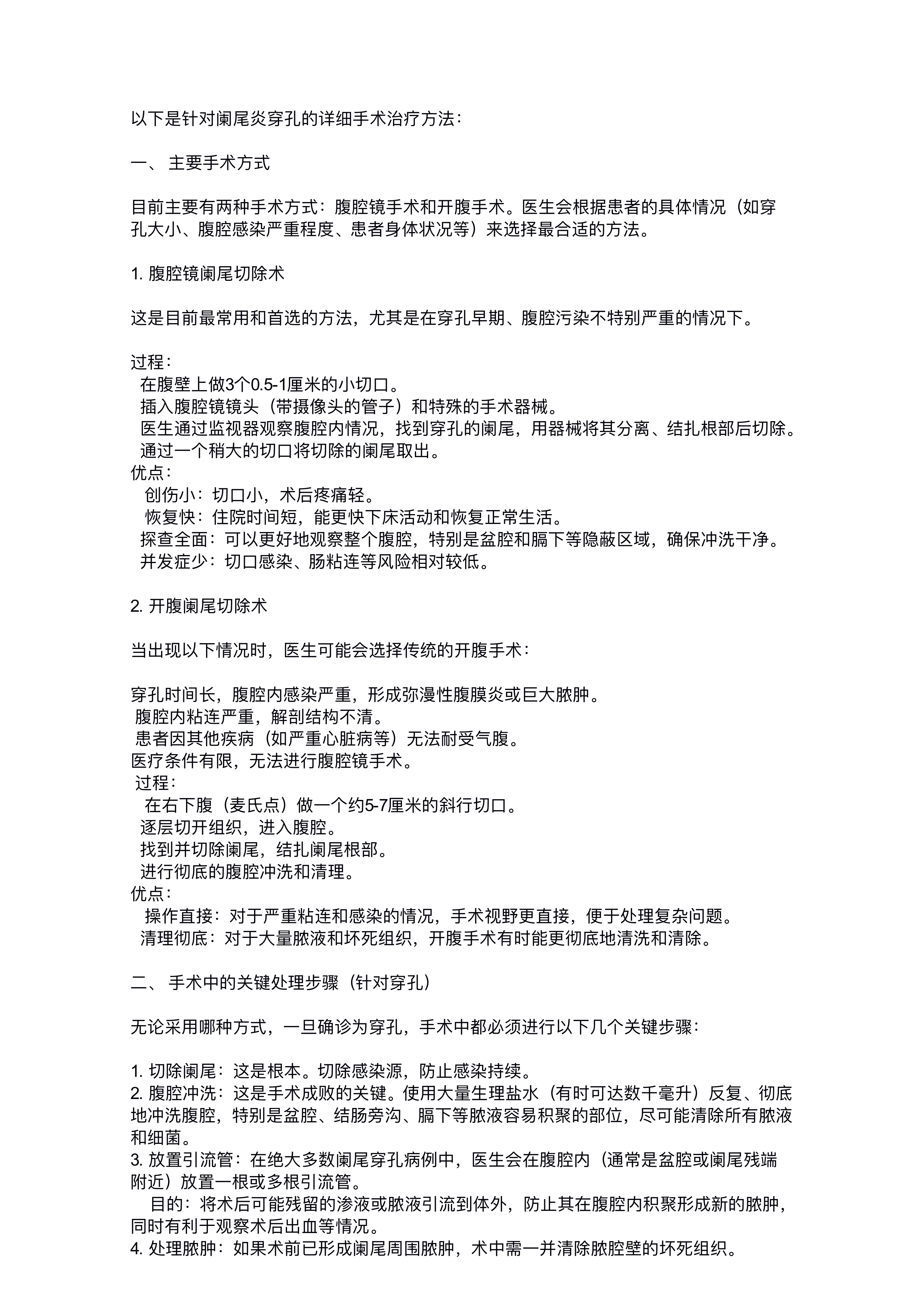 针对阑尾炎穿孔的详细手术治疗方法
