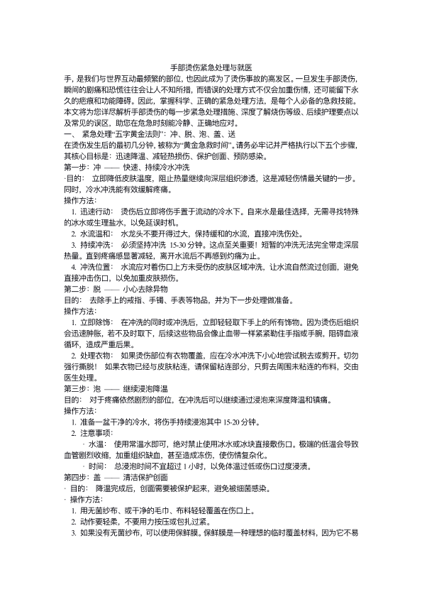 手部烫伤的处理与就医