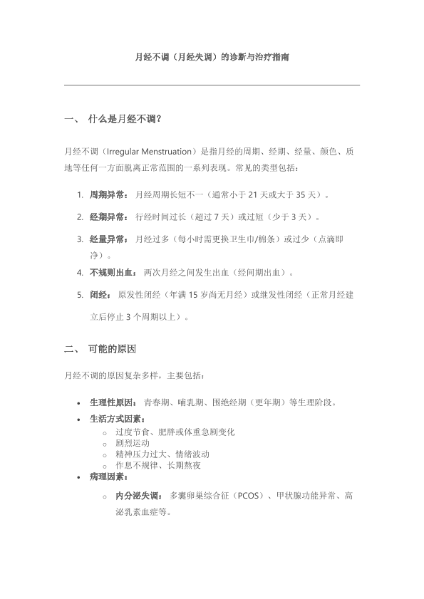 月经不调的诊断与治疗指南