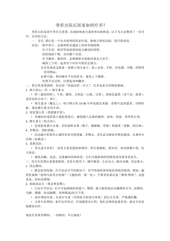 骨折后如何居家疗养?