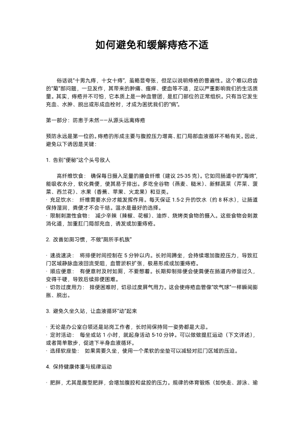 如何避免和缓解痔疮不适