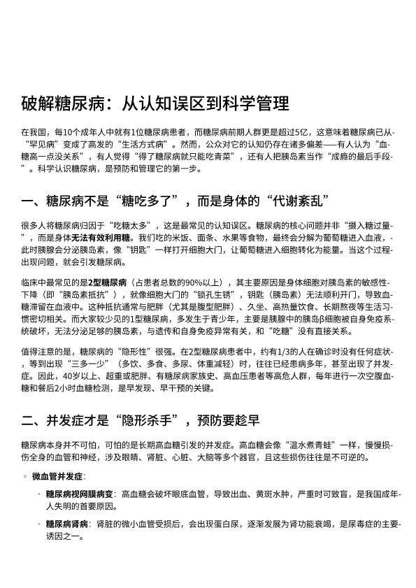 破解糖尿病:从认知误区到科学管理