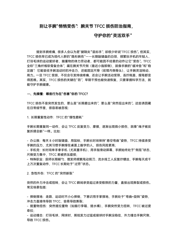 腕关节TFCC的防治