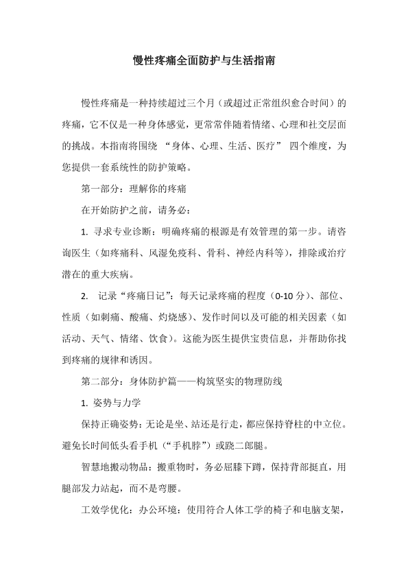 慢性疼痛全面防护与生活指南