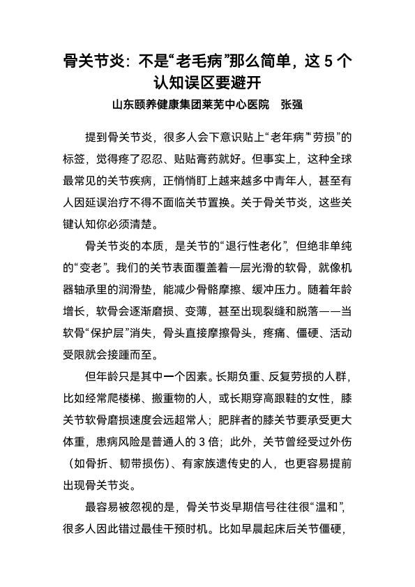 骨关节炎:不是“老毛病”那么简单,这5个认知误区要避开
