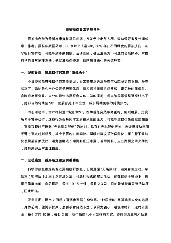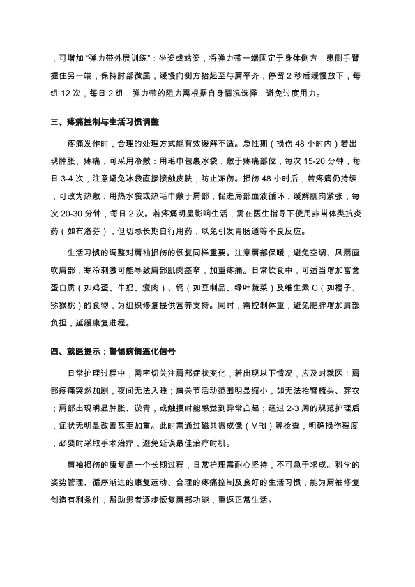 肩袖损伤日常护理