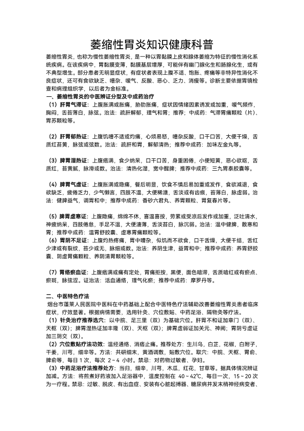萎缩性胃炎知识健康科普