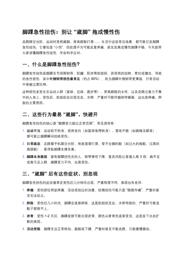 脚踝急性扭伤:别让“崴脚”拖成慢性伤
