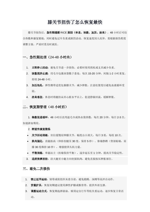膝关节扭伤怎么恢复最快