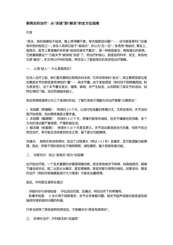 肩周炎的治疗:从“冻结”到“解冻”的全方位指南