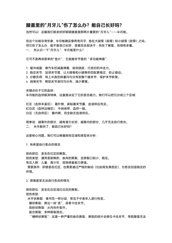 膝盖里的“月牙儿”伤了怎么办