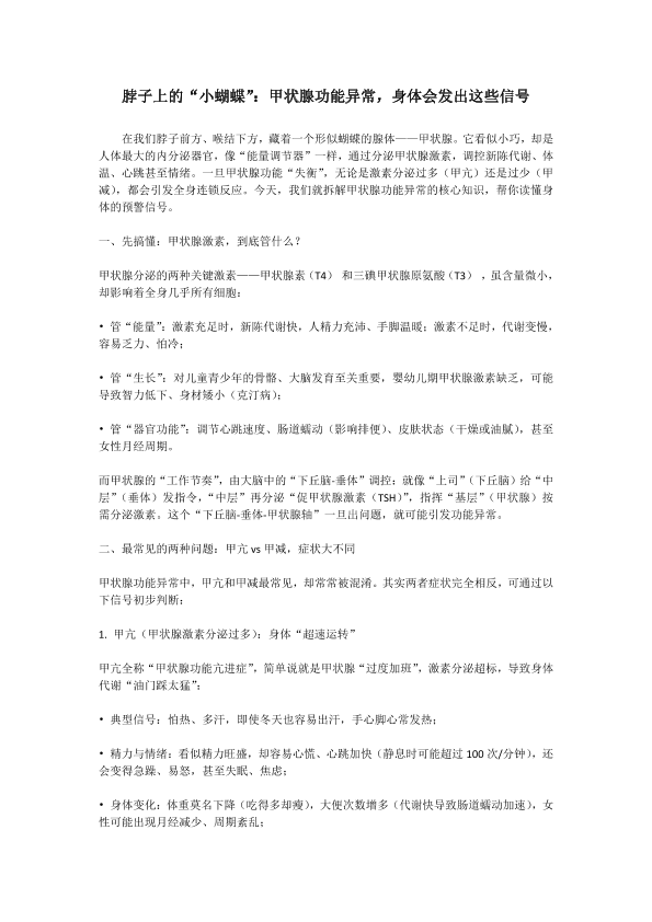 脖子上的“小蝴蝶”:甲状腺功能异常,身体会发出这些信号