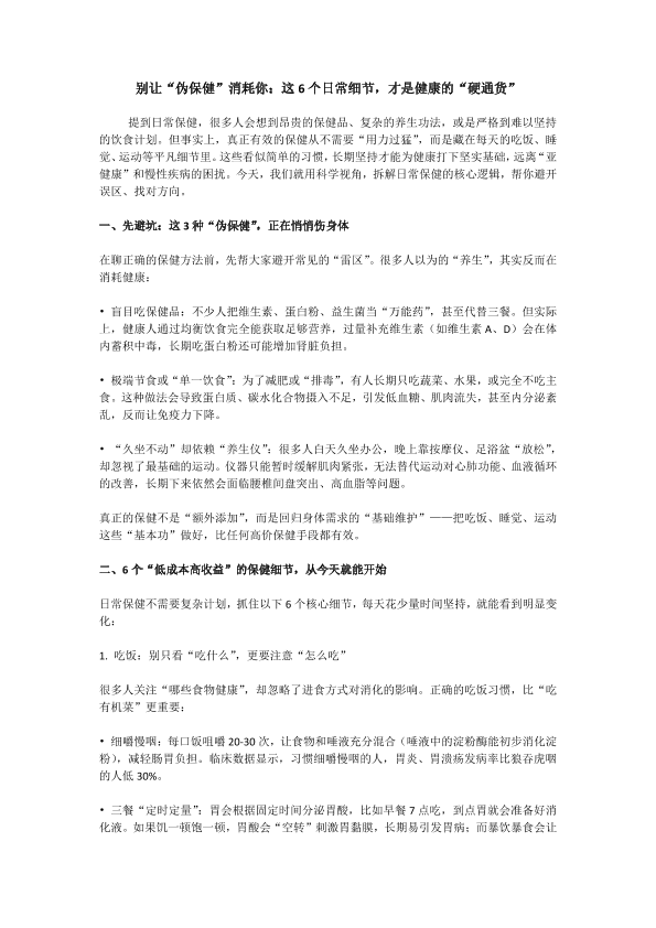 别让“伪保健”消耗你:这 6 个日常细节,才是健康的“硬通货