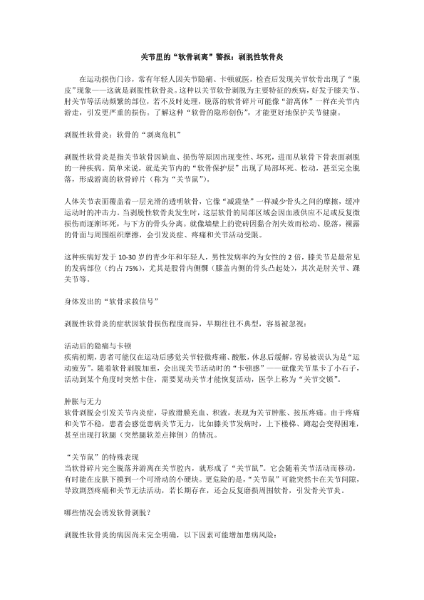 关节里的“软骨剥离”警报;剥脱性软骨炎
