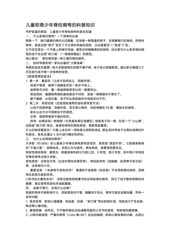 儿童和青少年脊柱侧弯的科普知识