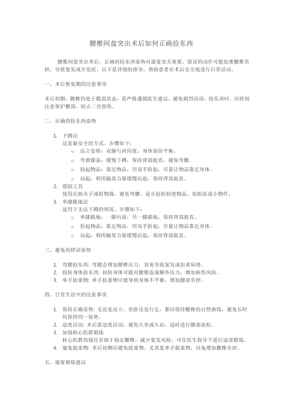 腰椎间盘突出术后如何正确捡东西