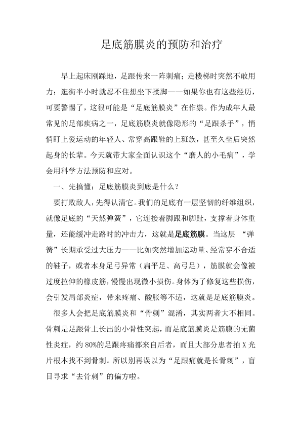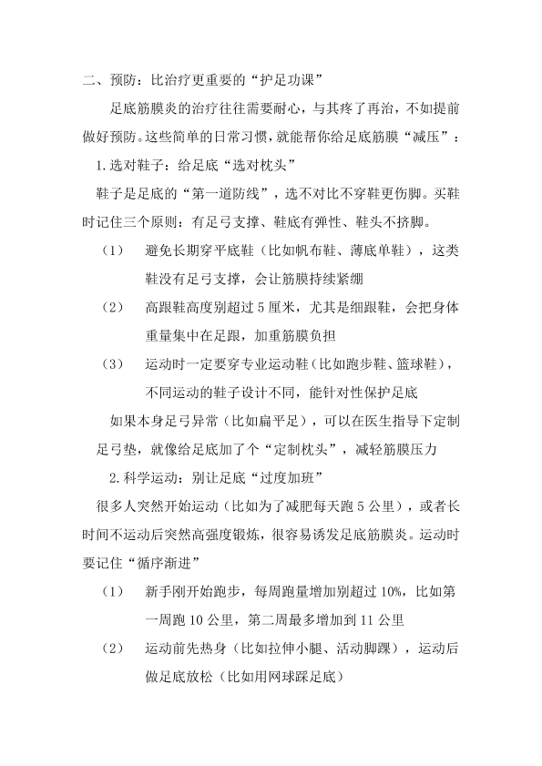足底筋膜炎的预防和治疗