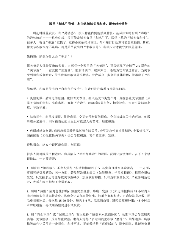 膝盖“积水”别慌:科学认识膝关节积液,避免越治越伤