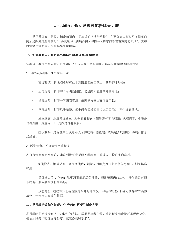 足弓塌陷:长期忽视可能伤膝盖、腰