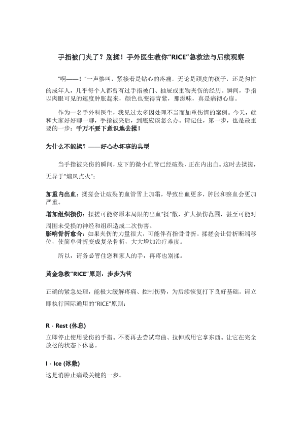 手指被门夹了?别揉!手外医生教你“RICE”急救法