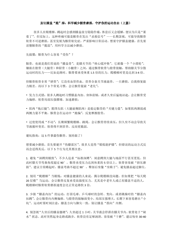 别让膝盖“脆”掉:科学减少髌骨磨损,守护你的运动自由(上篇)