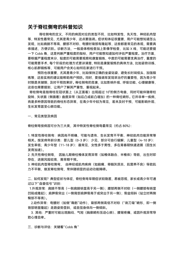 关于脊柱侧弯的科普知识