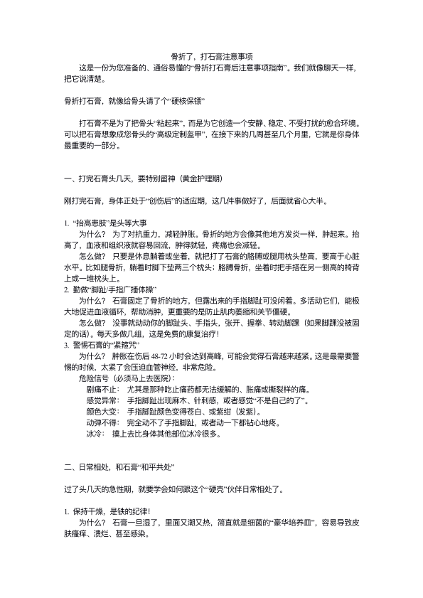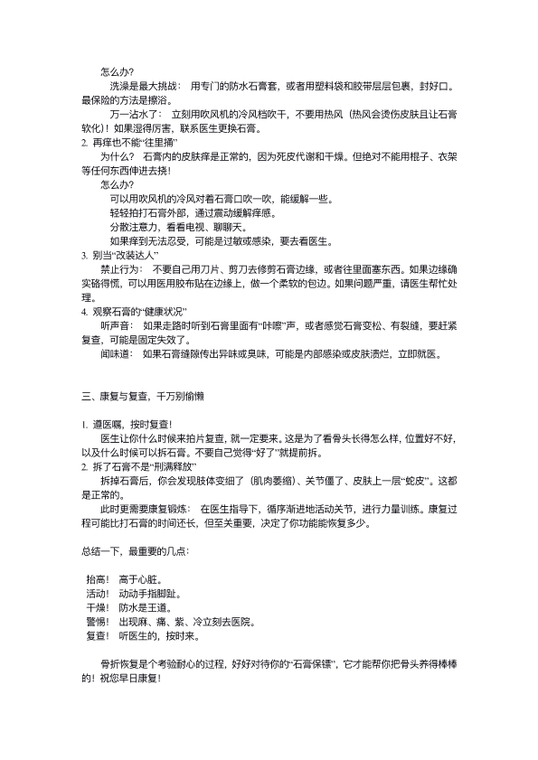 骨折了。打石膏注意事项