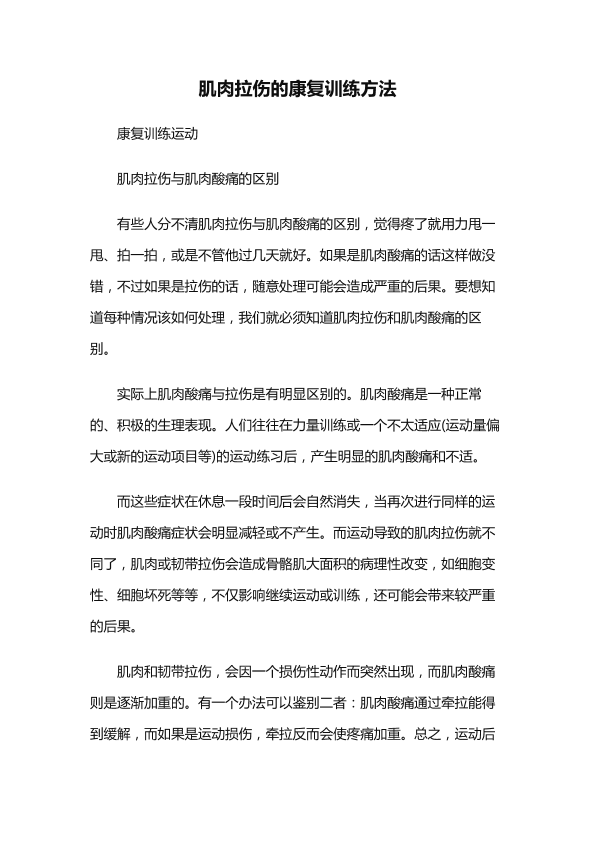 肌肉拉伤的康复训练方法