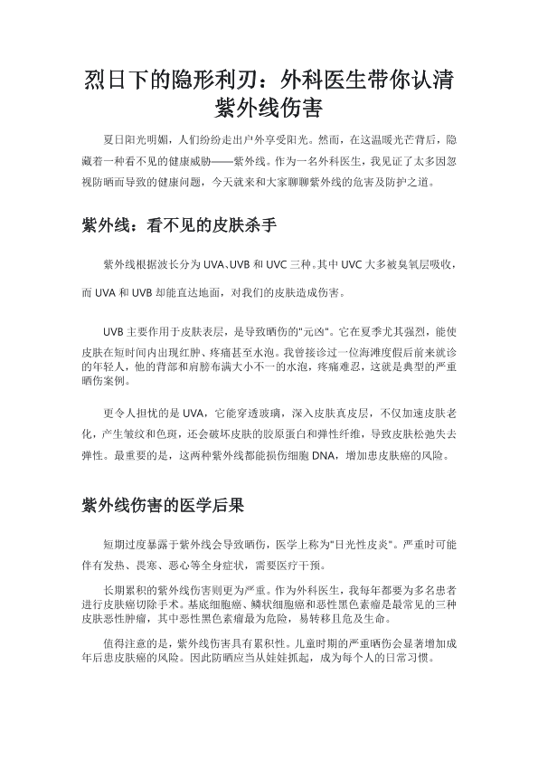 烈日下的隐形利刃:外科医生带你认清紫外线伤害