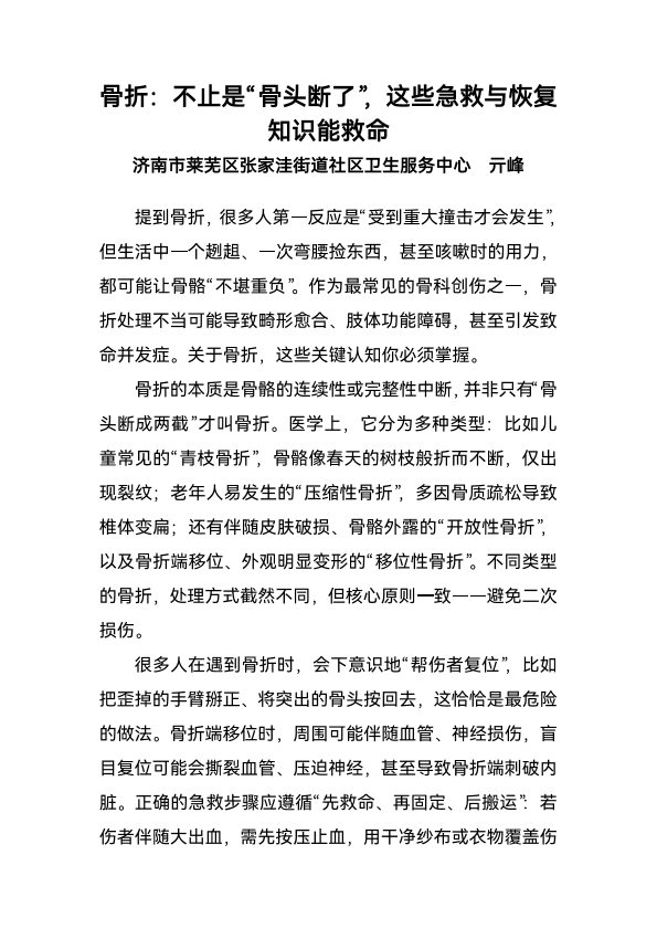 骨折:不止是“骨头断了”,这些急救与恢复知识能救命
